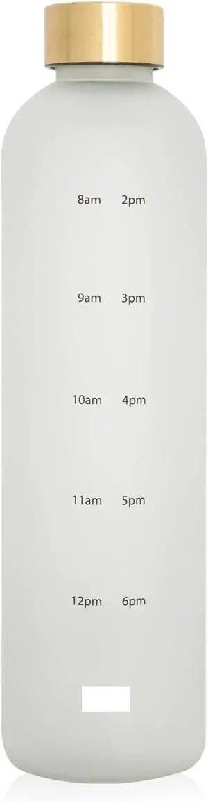 Beer Glasses Water Bottle with Time Marker Leak Proof Reusable BPA Free Frosted Plastic-Motivational Sport Water Bottle (Size : 1.0L, Color : Pink-1000) (White 1000)