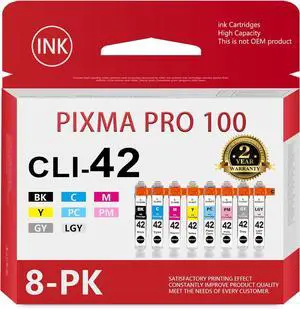 CLI-42 Ink Cartridges (14ml) High Yield Replacement for Canon PIXMA Pro-100S Printer | Professional Photo Ink & Anti-Leak Tech(BK/C/M/Y/PC/PM/GY/LGY)
