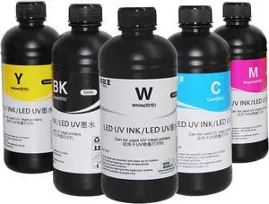 UV Ink UV Printer LED Ink LED UV Ink for DX4 DX5 DX6 DX7 DX10 TX800 XP600 Printhead for Ep 1390 L800 L1800 L805 R1800 R1900 UV Modified Printer (5x500ml CMYKW)