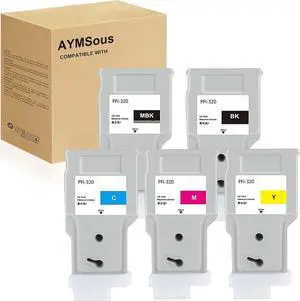 Compatible Ink Cartridge Replacement for Canon PFI-320 PFI320 for Canon imagePROGRAF IPF TM-200 IPF TM-205 IPF TM-300 IPF TM-305(5-Pack MBK/B/C/M/Y)