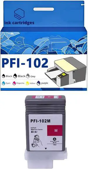 PFI-102 PFI-102MBK PFI-102BK PFI-102C PFI-102M PFI-102Y Ink Cartridges Compatible for Canon IPF500 510 600 605 610 650 700 710 Inkjet Printers, Leak-Proof Design Crisp Printing 1 Pack Magenta