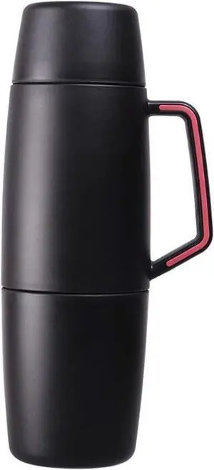 Insulated 1000ML Vacuum Insulated Beverage Bottle with Handle, Stainless Steel, Outdoor Water Cup Coffee Carafe Tea Pot (White) (Black)