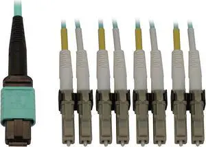 Tripp Lite Switchable Fiber Patch Cable, 50/125 OM3 MTP/MPO to 4x Duplex LC (F/M), 12 Fiber, 40/100/400GbE, LSZH Jacket, Aqua, 3 Meters / 9.8 Feet (N844X-03M-8L-P)