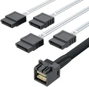 Internal HD Mini SAS Cable SFF-8643 to 4 SATA Digital Black Cord (1 Cable, 0.5 M / 1.6 Feet)