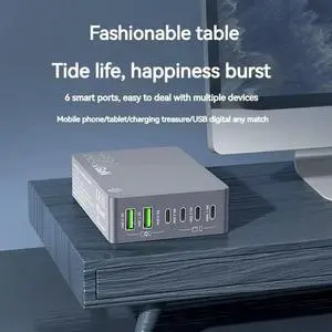 220W GAN 6 Port USB PD 100W Laptop Charger USB Type C QC3.0 Fast Desk Charging Station For Phone Tablet Laptop-N33R