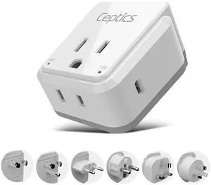 World Travel Plug Adapter Set, Safe USB-C 3.0-2 USA Socket,30W PD & QC - Compact & Powerful - Use in Europe Includes Type A, B, C, E/F, G, I SWadAPt Attachments (PAK-30-WS)