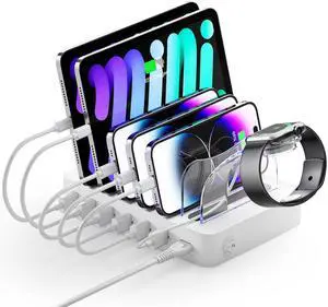 Multi USB Charging Station,100W 10-Port Type C Fast lPad Charging Station for Multiple Devices with Adjustable Dividers, Charger Organizer Compatible with Phone, Tablet,Kindle and More(White)