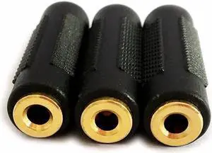 3pcs/lot 3.5mm Stereo Jack to 3.5mm Stereo Jack Adaptor Connectors, Gold Plated, Female to Female