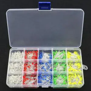 500Pcs/Box 3mm LED Diode Yellow Red Blue Green White Assortment Light DIY Kit