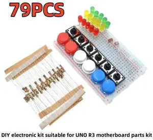 79PCS DIY electronic kit suitable for UNO R3 motherboard parts kit 400 hole breadboard button resistor LED light kit