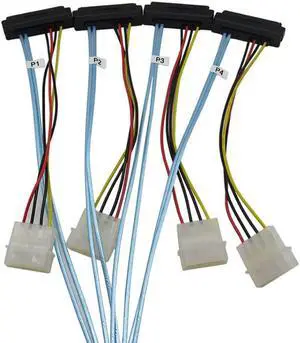 Internal Mini SAS 36P SFF-8643 to (4) SAS 29pin SFF-8482 Connectors with 4Pin Power Cable Server Hard Disk Data Cable