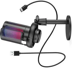 RGB Lighting USB Microphone For Gaming- Desktop Computer Conversation Voice Recording Condenser Mic With Mounting Bracket