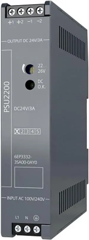 PSU2200/1AC/24VDC/3A Power Supply, Input: AC 85-264V, Output: DC 24V/3A, 6EP3332-3SA00-0AY0