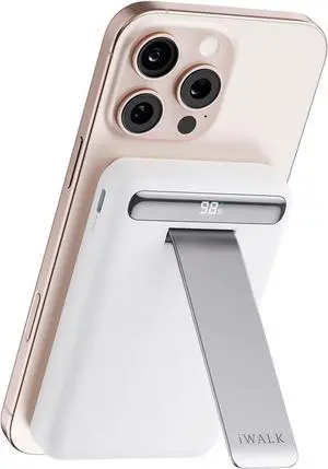 iWALK Magnetic Power Bank iPhone with Fortable Stand, Qi2 Certified 15W Fast Magnetic Portable Charger with LED Display,10000mAh Battery Pack Wireless Powerbank for iPhone 16/15/14/13 Series, White