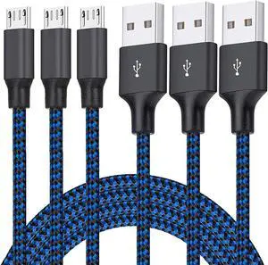 Micro USB Cable, 3Pack 6FT/2M Android Charger Cord Long Nylon Braided Sync and Fast Charging Cables Compatible with Samsung Galaxy S6 S7 Edge, Android & Windows Smartphones and More- Blue