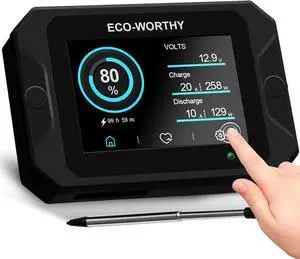 ECO-WORTHY Battery Monitor with Hall Sensor Touchable Display, 9-80V 300A Battery Monitor for Li-ion/LiFePO4/AGM/Gel Battery in Golf Cart/RV/Solar System