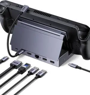 Docking Station for Steam Deck and for ROG Ally, 6 in 1 Handheld Game Console Dock, 1 4K 60Hz HD IM Output, 1 1000Mbps Ethernet Input, 2 USB A 3.0, 1 USB C