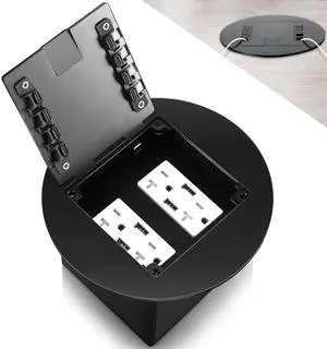 1 Pcs Recessed Floor Outlet 4. 72" x 4. 72" x 3. 94" 2-Gang with 4. 8a USB Chargers 20 Amp Floor Receptacles Round Hidden Outlet Kit Electrical Waterproof Box, Etl Listed (Black)