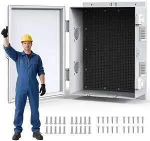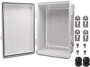 Outdoor Waterproof Electrical Box Junction Box Weatherproof IP67 ABS Plastic Enclosure Switch Router Project Box Electronics Enclosure with Mounting Plate Wall Bracket Grey 11.1"x7.5"x5.1"