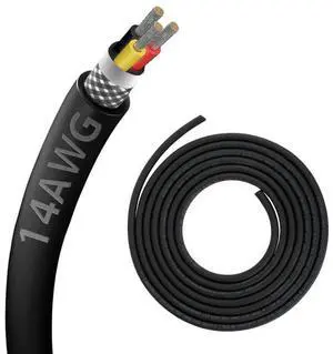 14AWG 14/3 3 Core Shielded Wire CNC Wire (15FT) UL2464 Tinned Copper Core 14 Gauge Cable Speaker Wire for CNC Router Machine, CNC VFD Spindle, Electrical Appliance, Transformer and 3D Printer,etc