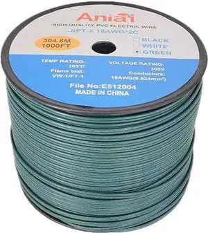 SPT-2 18/2 Low Voltage Landscape Wire 1000FT - 18 Gauge 2 Conductor Stranded Copper Cable for Outdoor Lighting, Direct Burial Waterproof Electrical Wire, Green