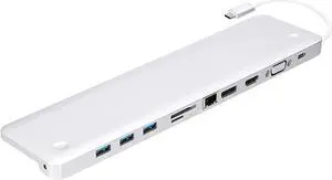 UtechSmart 12 in 1 Triple Monitor USB C Docking Station, Compatible with macOS & Windows - HDMI, VGA, PD3.0, Ethernet, SD/TF Card Reader, 10 USB Ports