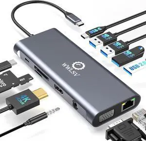 ABIWAZY USB C Hub Triple Monitor Adapters 8 in 1 USB C Docking Station with Dual HDMI Displayport VGA, USB C 100w PD,3 USB2.0 Multiport Dongle for Dell XPS 17/15/13,Lenovo Thinkpad,HP Envy,MacBook