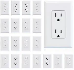 ELEGRP Decorator Receptacle, 15A 125V Standard Electrical Wall Outlet, Non-TR, 2 Pole 3 Wire, Self-Grounding Residential Grade, Screwless Wall Plate Included, UL Listed (20 Pack, Glossy White)