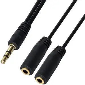 Black 3.5mm Stereo Male to Double 3.5mm Female Audio Headphone Y Splitter Cable with Volume Switch