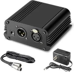 1Channel 48V Phantom Power Supply with Adapter BONUS+XLR 3 Pin Microphone Cable for Any Condenser Microphone Music Recording Equipment