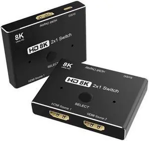 BUCIER HDMI 2.1 Ultra 8K HD Bi-Directional Switch 8K@60Hz 4K@120Hz 1in 2out 2in 1out High Speed 48Gbps Splitter(Singal Display) Converter with One 8K HDMI Cable Compatible with Xbox X PS5