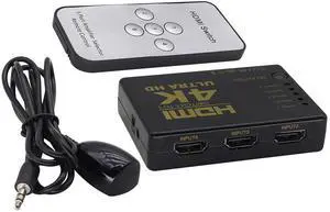 Vszerda HDMI1.4 switcher with IR Remote Control 4K Smart 5 Ports with Power Supply,1080P HD Video HDMI 5 in 1 Out,for Digital HD TV with HDMI interfaces,Set-top Boxes,DVD and Other Devices.(1Pack)
