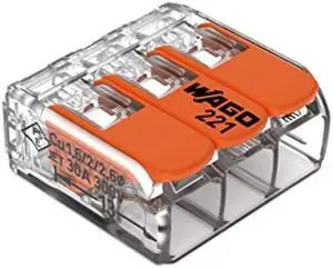 221-613 - PUSH-IN CONN ORANGE 3C/20-10AWG RE-USABLE WAGO LEVER NUTS