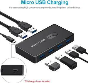 USB3.0 Switcher,USB Switch 2 Computers Share 4 USB3.0 Devices 2 in 4 Out USB Kvm Switch Selector for Mouse Keyboard Printer