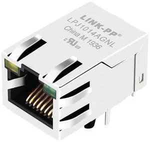 LINK-PP XRJH-01D-1-D12-170 RJ45 Magjack Connector, 8P8C 10/100Base-T with Magnetics, Shielded with Tabs, Tab Up Orientation, with LED Indicator, Through Hole Mount (Tape & Reel)