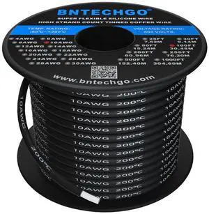 BNTECHGO 10 Gauge Silicone Wire Spool Black 100 feet Ultra Flexible High Temp 200 deg C 600V 10 AWG Silicone Rubber Wire 1050 Strands of Tinned Copper Wire Stranded Wire for Model Low Impedance