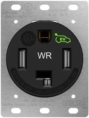 LIDER 30 Amp Flush Dryer Receptacle, NEMA 14-30R, 125/250V, Heavy-Duty Weather Resistant Outlet, EV Grade, Outdoor/Indoor, 2.40" Diameter, Self-Grounding, 3-Pole 4-Wire, UL Listed, Black