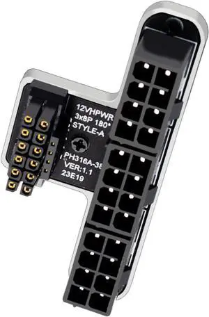 EZDIY-FAB PCIe 5.1 Adapter - 600W 12+4pin,16pin 12VHPWR GPU Power Connector,12V-2x6 GPU Adapter,90 Degree Right Angle - Compatible with RTX 3090Ti, 4070Ti, 4080, 4090 GPU -STD Type, Black, 1 Pack