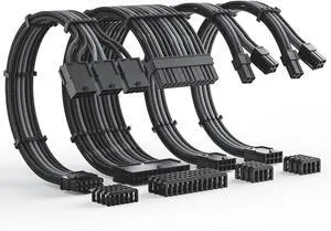 LINKUP - AVA 50cm PSU Cable Extension Sleeved Custom Mod GPU PC Braided w/Comb Kit - Compatible with RTX3090 | 1 x 24 P (20+4) | 2 x 8 P (4+4) CPU | 3 x 8 P (6+2) GPU Set | 500mm - Black