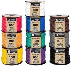 10 Roll 12 Gauge Copper Clad Aluminum Primary Wire - Assorted Colors - 100 Ft of Wire per Roll