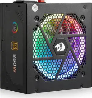 Redragon RGPS-850W 80+ Gold 850 Watt Power Supply w/Upgraded ATX 3.1 & PCIe 5.1 Fully Modular, 100% Japanese Capacitors, Smart ECO Low Noise RGB Fan