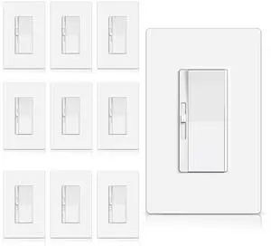10 Pack BESTTEN 0-10V LED Dimmer Light Switch, Low Voltage Dimmable Switch for Dimmable LED Lights, Single-Pole or 3-Way, Screwless Wallplate Included, White, cETL Listed