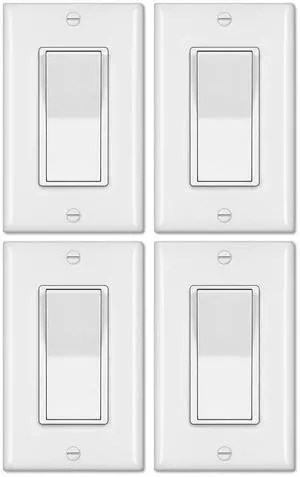 BESTTEN 4 Pack 4-Way Decorator Wall Light Switch, Wallplate Included, 15A 120/277V, On/Off Paddle Rocker Interrupter, Self-Grounding, cUL Listed, White
