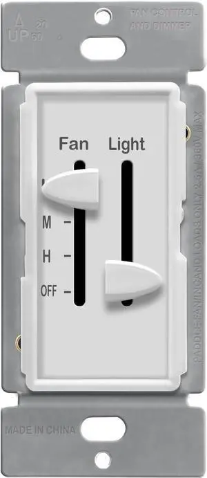 ENERLITES 3 Speed Ceiling Fan Control and LED Dimmer Light Switch, 2.5A Single Pole Light Fan Switch, 300W Incandescent Load, No Neutral Wire Required, 17001-F3-W, White
