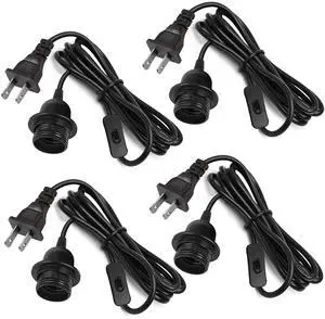 16Ft Plug in Pendant Light Cord, Black Hanging Lantern Extension Cord with Bulb Socket E26 E27 with On/Off Switch, Socket Rings, UL Approval, 4 Pack
