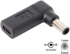 140W 100W DC Jack 6.0x1.4mm Input to USB-C Type-C Angled 90 Degree Power Plug Charge Adapter for Laptop Phone