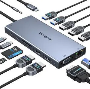 USB C Docking Station Quad Display, 14-in-1 Laptop Docking Station Dual Monitor, 8K@30Hz DP, Dual 4K@60Hz HDMI, VGA, 5 USB Data Ports, 100W PD, Ethernet, SD/TF, Mic/Audio, USB C HUB, Thunderbolt Dock- Model #: GODCAXB0CP4ZGTWD