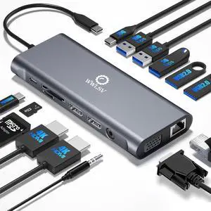 VENTION Docking Station Dual Monitor 15-in-1 Triple Display USB C Laptop Docking Station for Windows PC, Thunderbolt 3/4, Dell, HP, with Dual 4K HDMI, DP, 10Gbps USB, RJ45, 100W PD, Audio, SD/TF- Model #: GODCAXB0F5PTZTCP