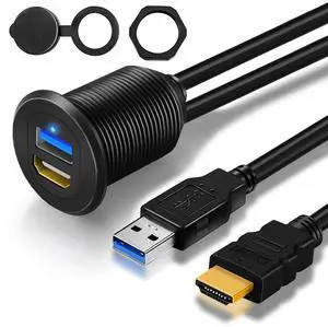 GOBGOD USB 3.0 HDMI Car Mount Flush USB Port Cable, Alloy Shell USB3.0 and HDMI Extension Flush Dash Panel Mount Cable for Car Boat Motorcycle with LED Indicator (3 feet)