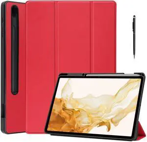 WERLEO Case for Samsung Galaxy Tab S8 Plus 2022 / S7 FE 2021 / S7 Plus 2020 12.4 inch, Slim Smart Stand Cover Protective Cover with Pencil Holder, Stand, Universal Stylus Pen Red